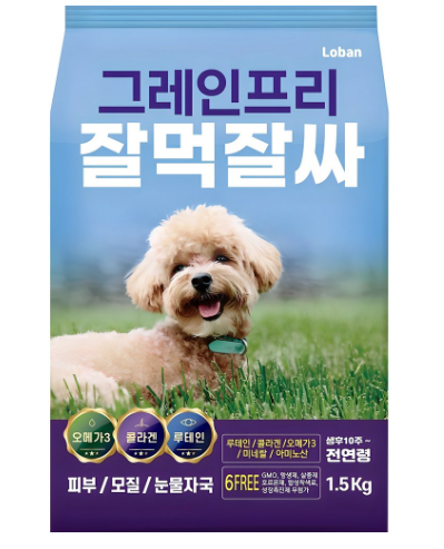 - 잘먹잘싸: 자색고구마를 주원료로 한 피부, 모질, 눈물자국을 위한 사료입니다.