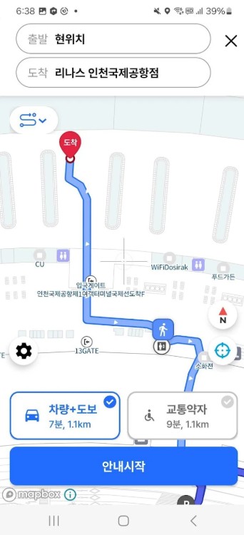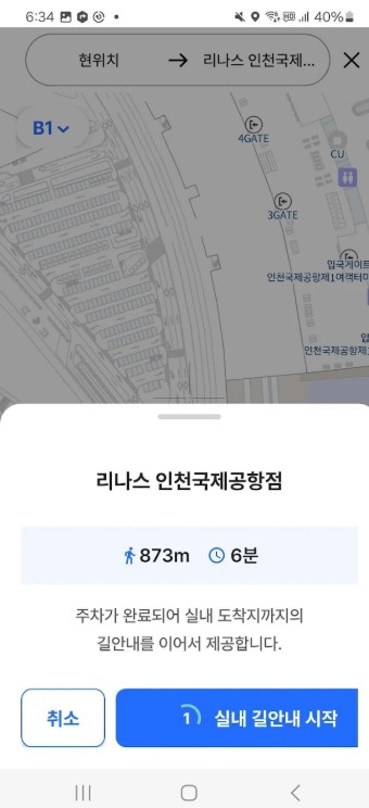 4. 주차 후 길 찾기: 주차를 완료한 후 터미널까지의 경로를 안내받습니다.